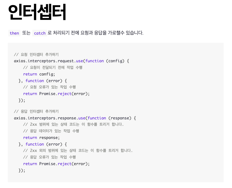 axios에는 interceptors라는 기능이 이미 내장이 되어 있습니다.